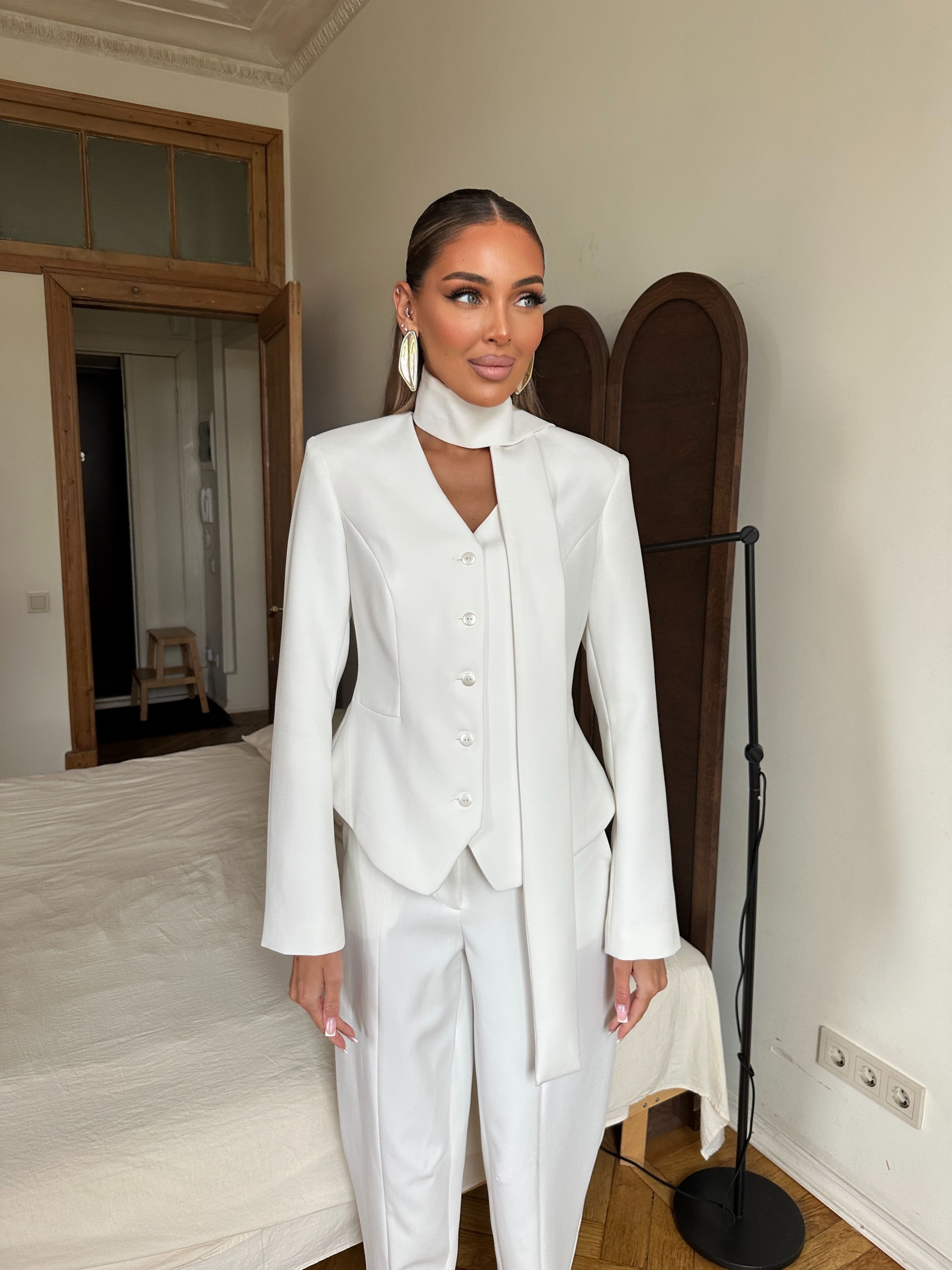 Комплект из жакета о-силуэта и брюк-алладин белый