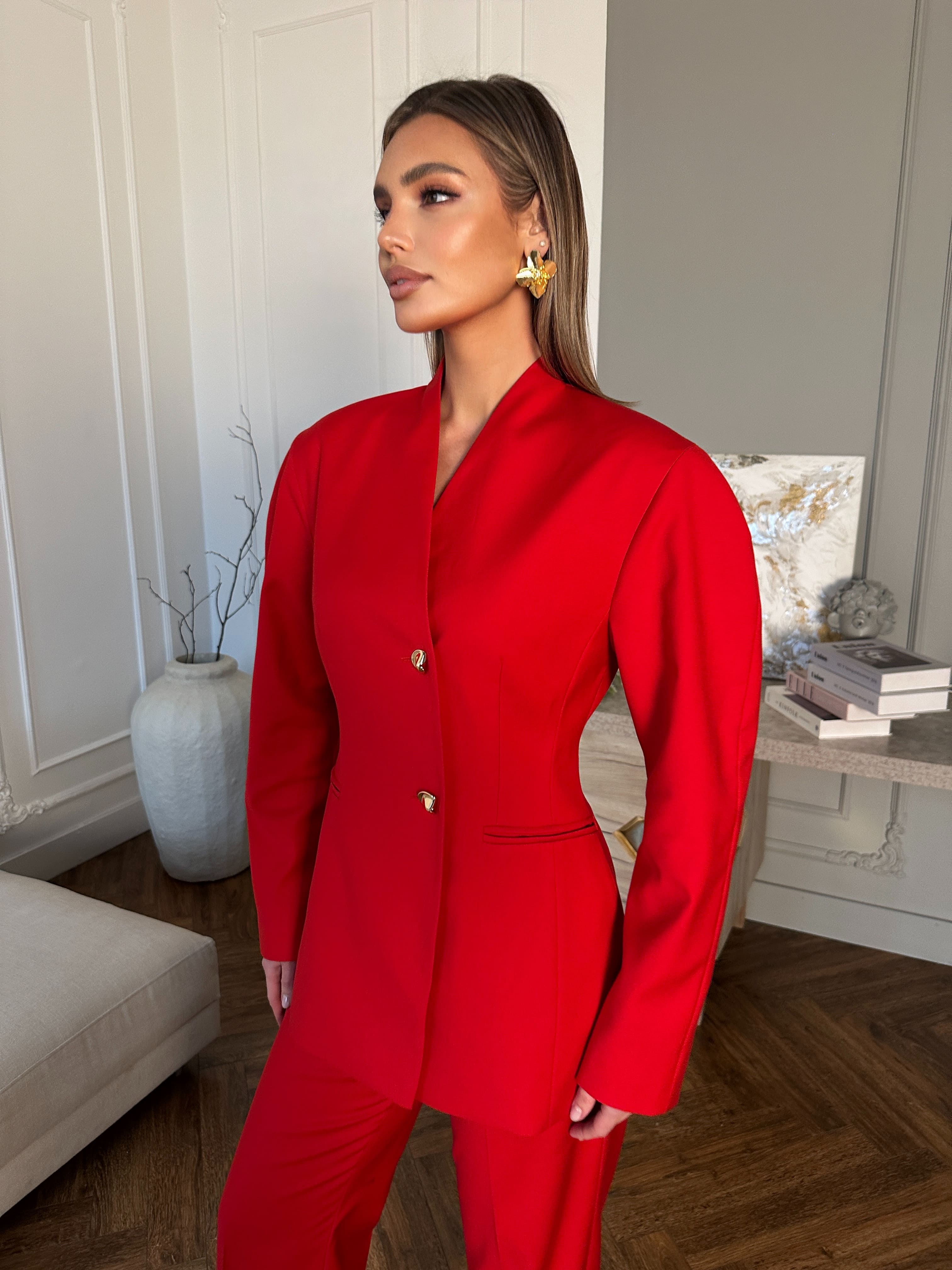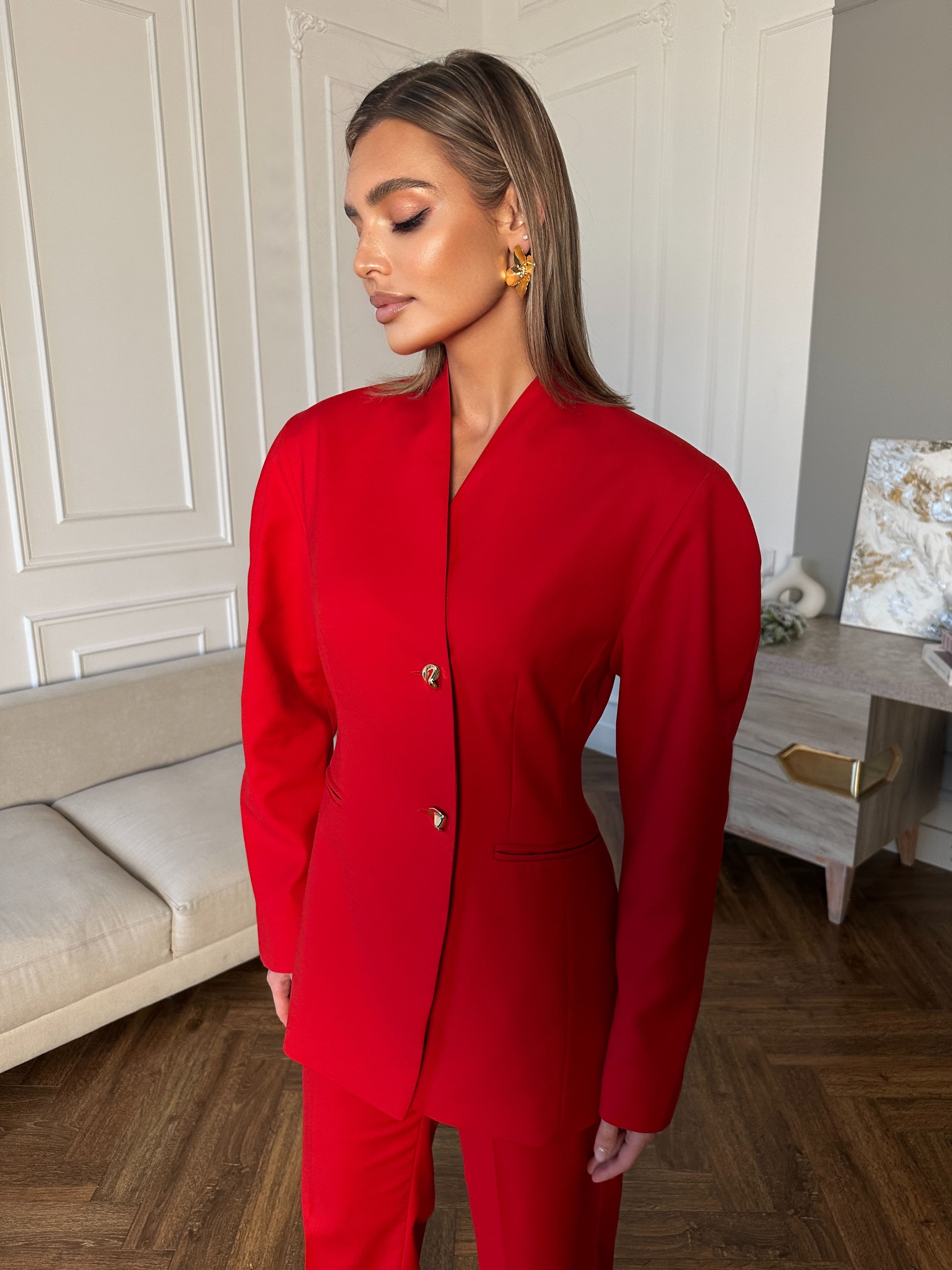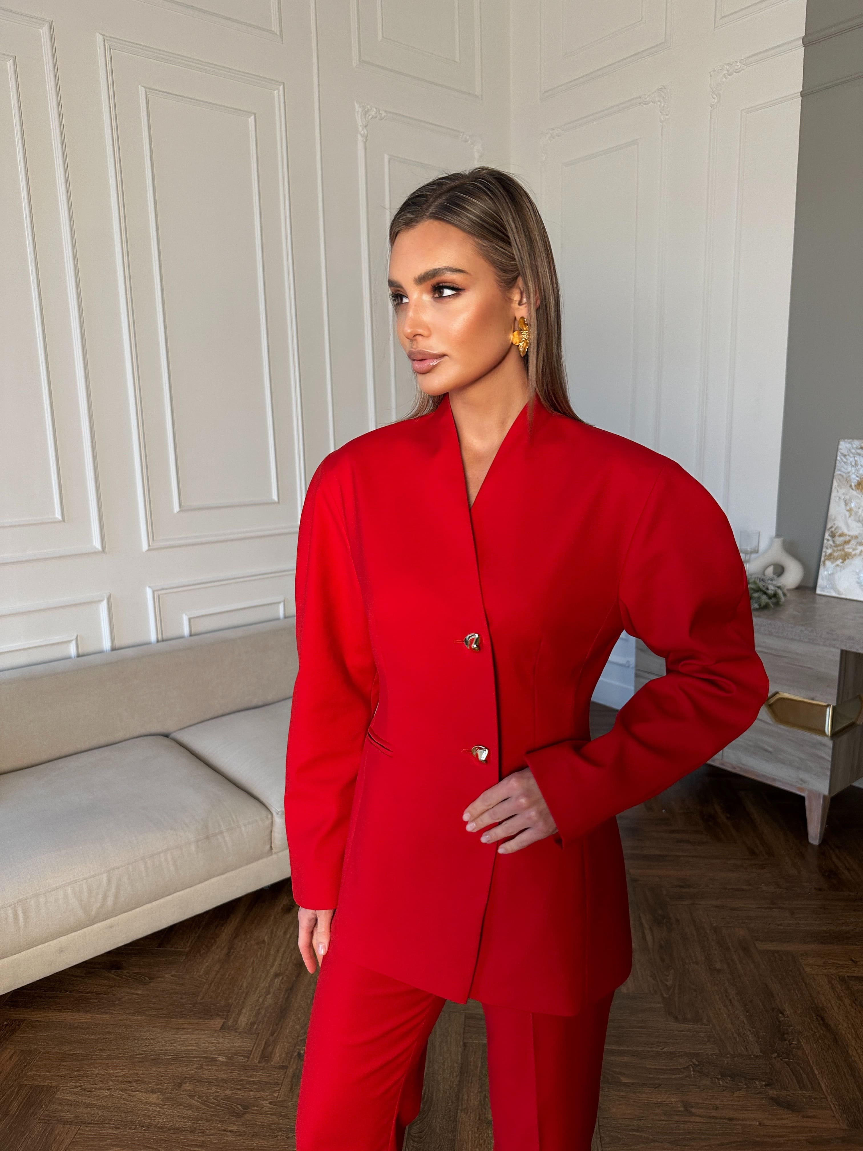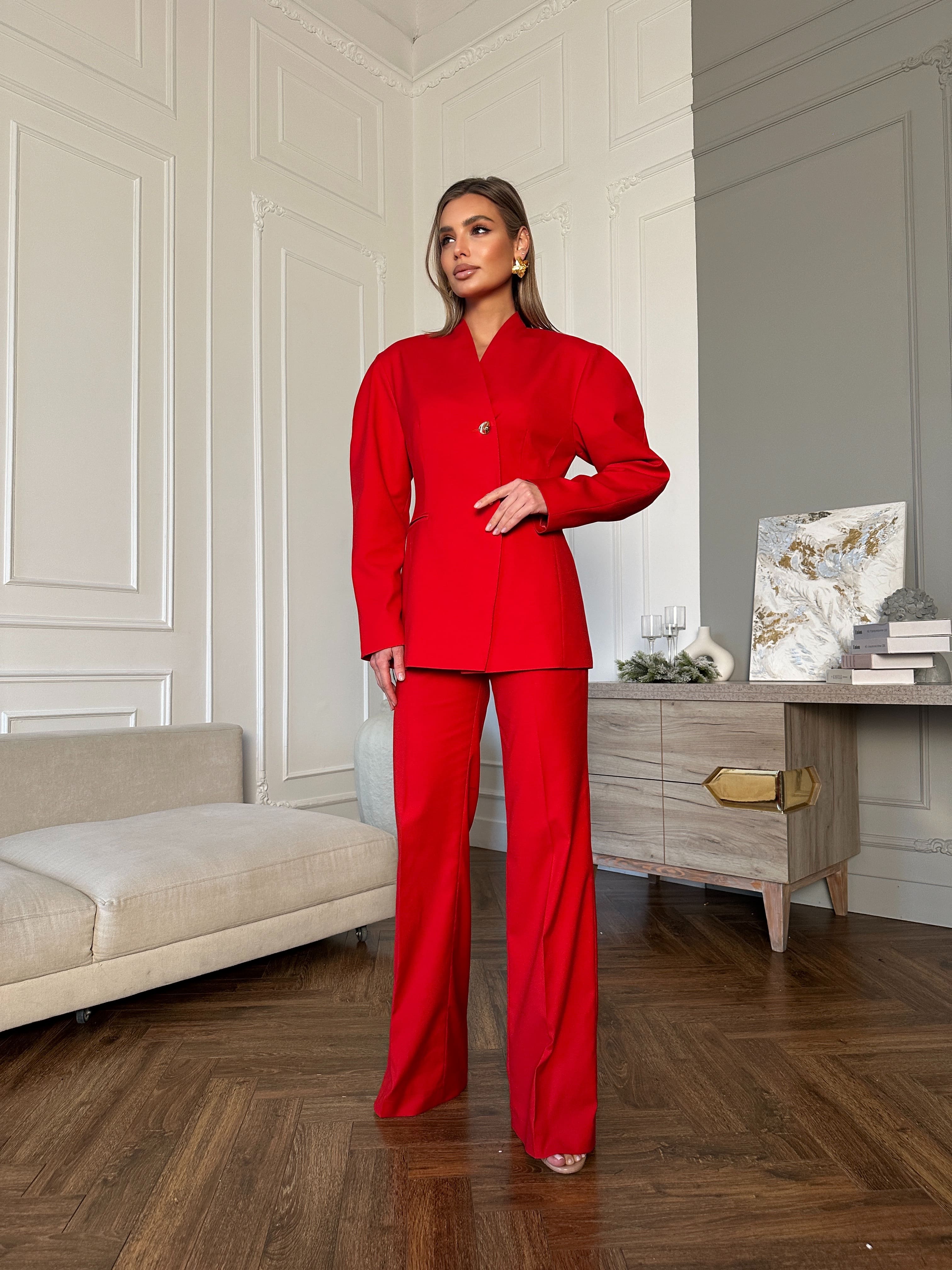 Комплект из жакета о-силуэта и брюк-палаццо. Жакет выполнен на подкладе из поливискозы, брюки на потайной молнии.