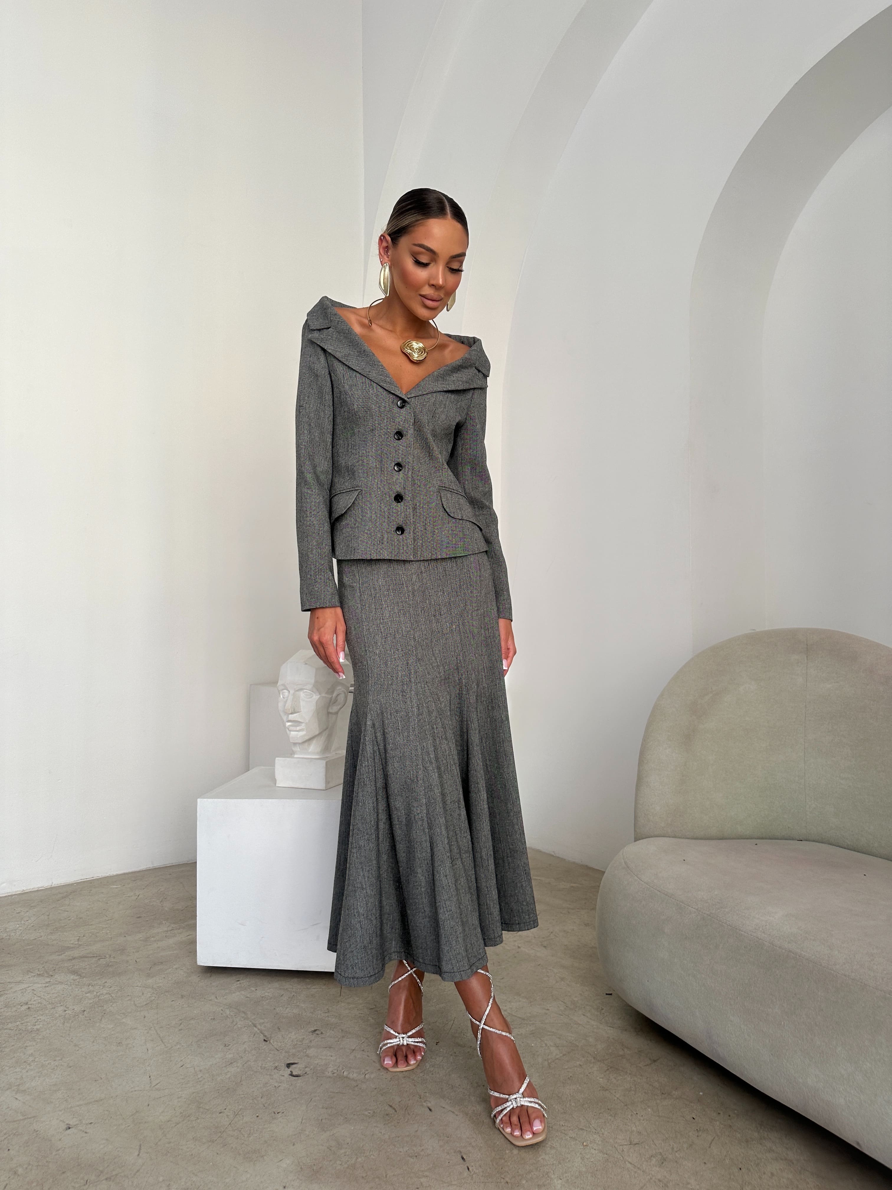 Юбка с клиньями из итальянской шерсти. Полностью на подкладе из поливискозы, застежка на потайную молнию.