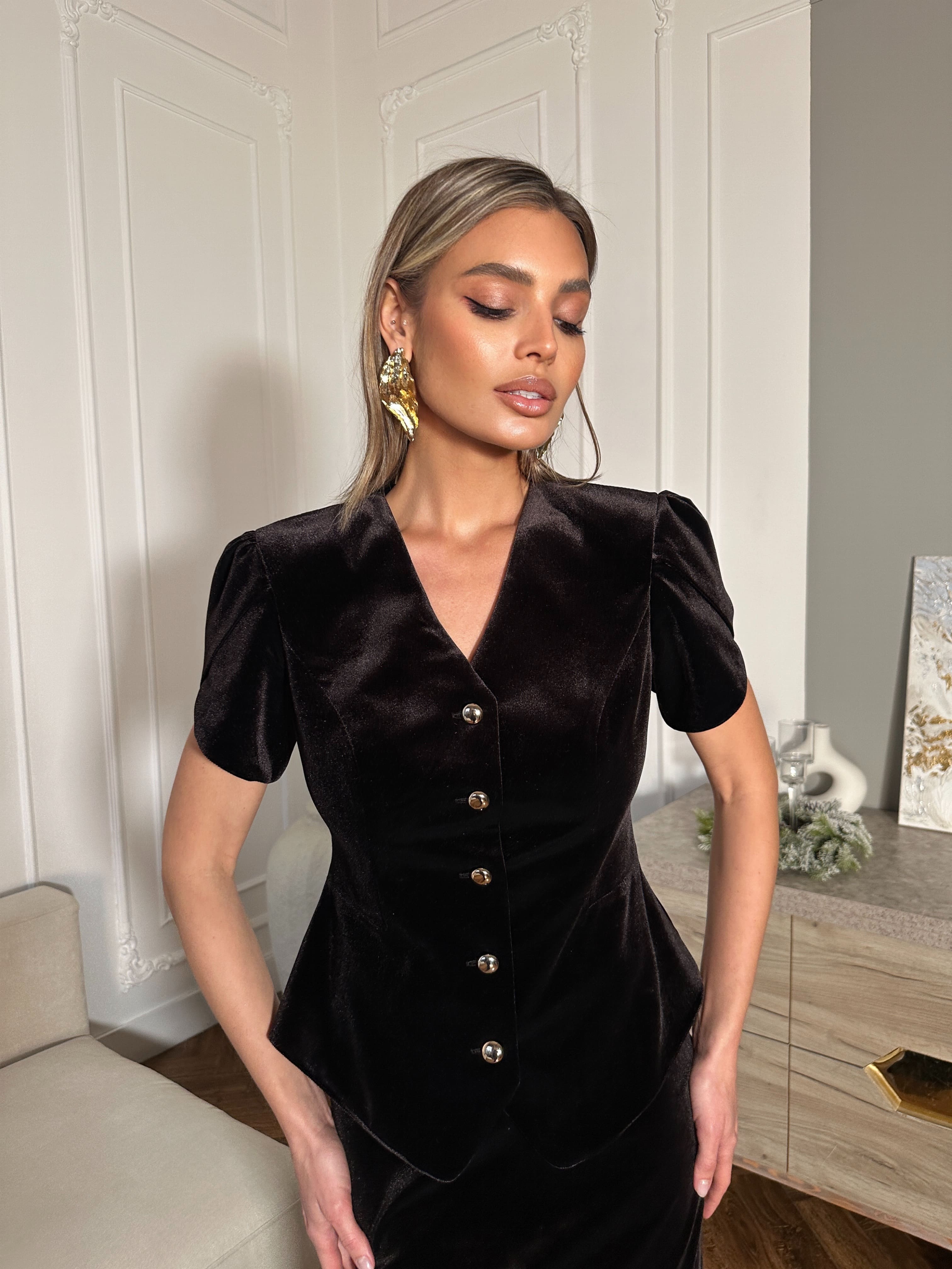 Жакет с рукавами лепестки из бархата. В комплекте идет шарф. Тренд 2026. Жакет выполнен полностью на подкладе из поливискозы.