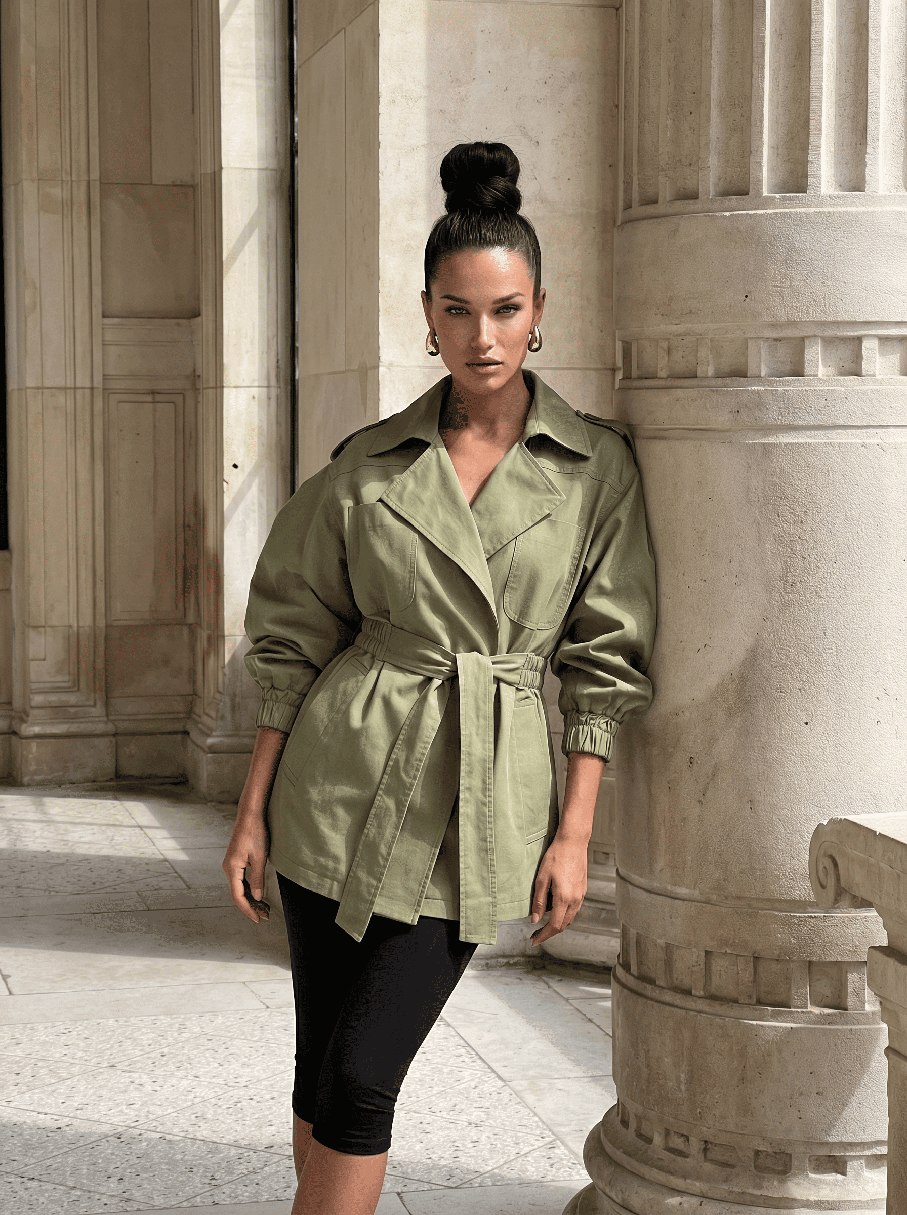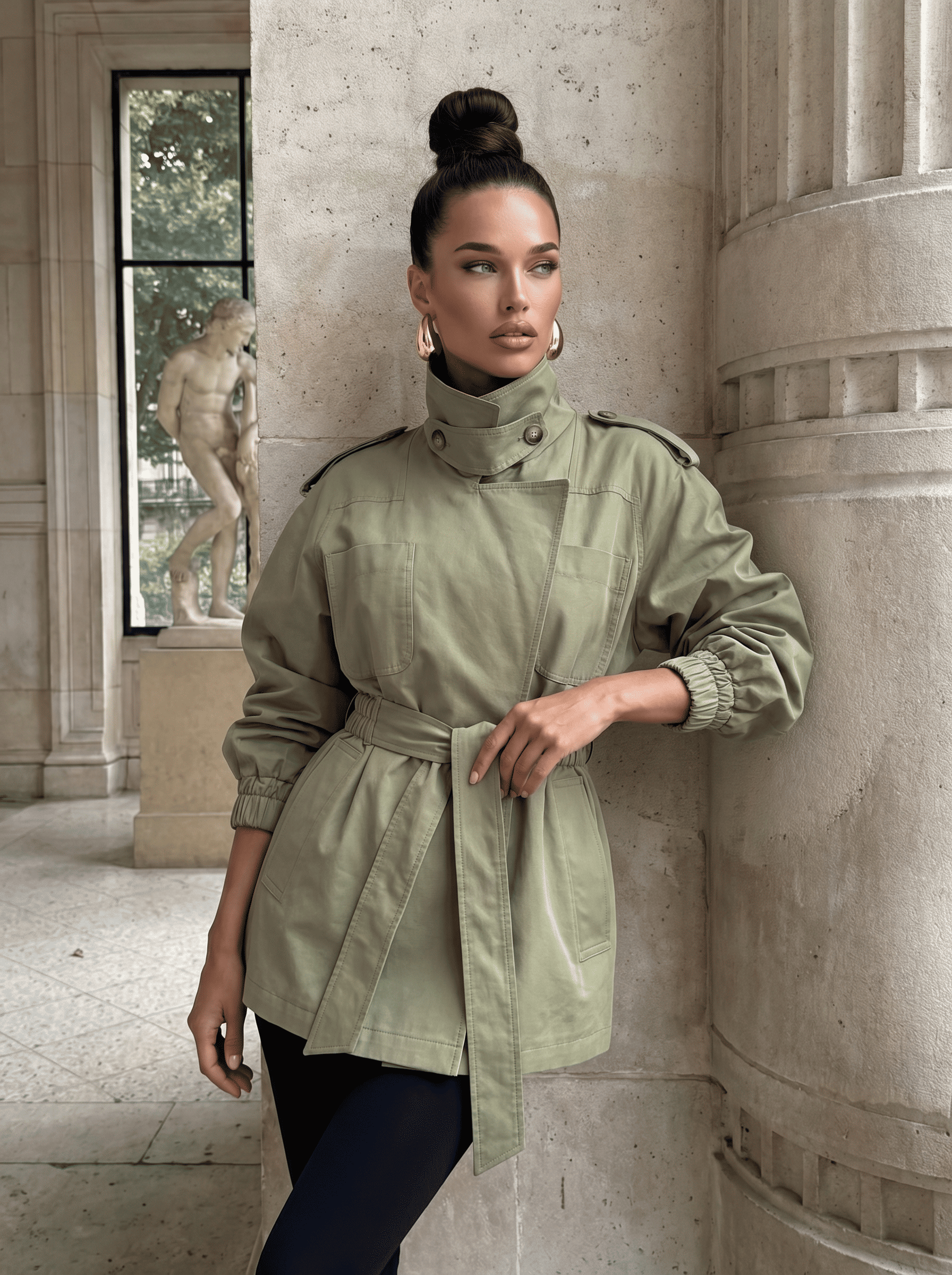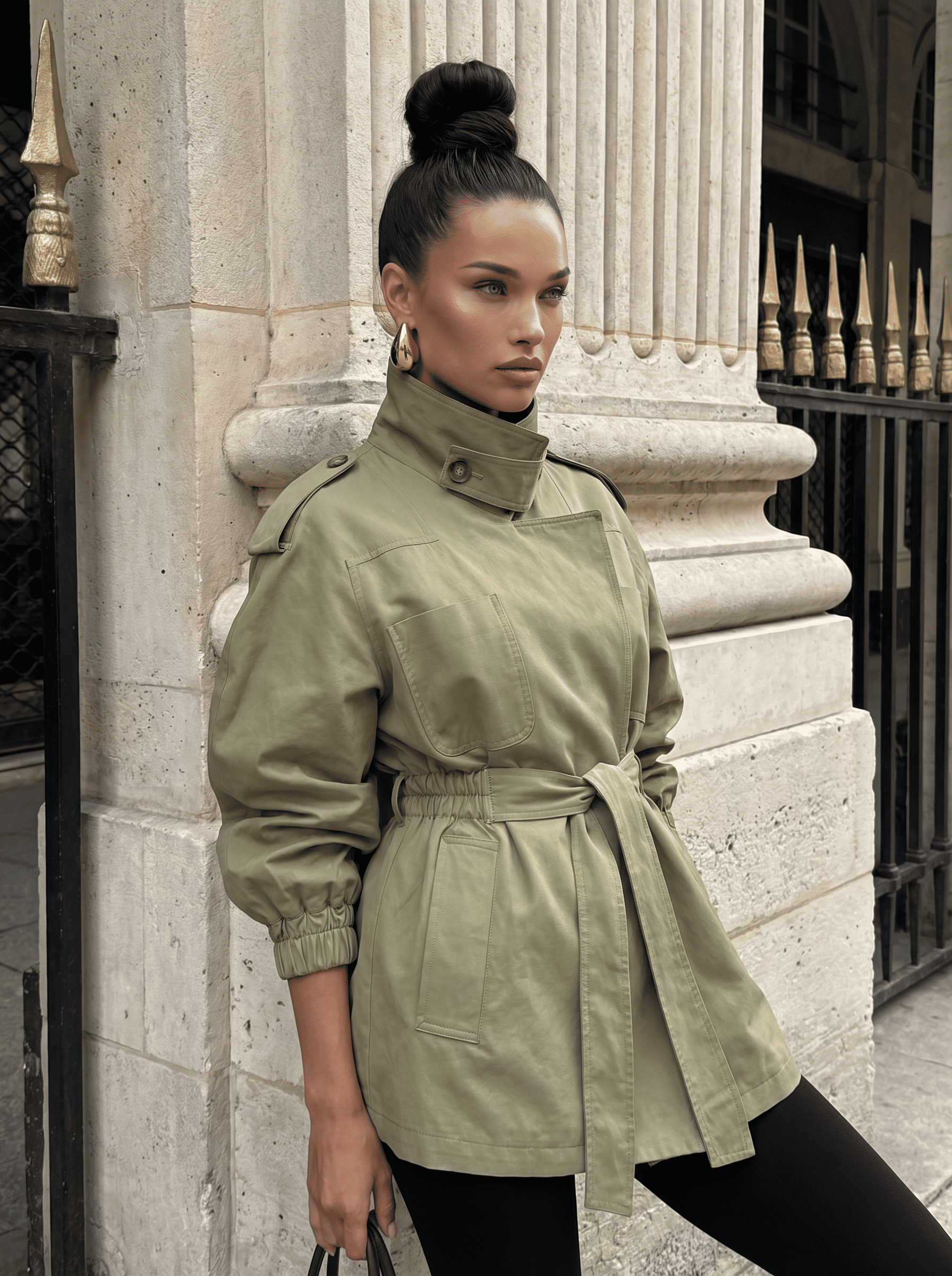 Дизайнерский тренч собственного производства. Дыщащий хлопковый материал с водоотталкивающий пропиткой на подкладе из поливискозы. Тренч можно носить 2 способами: с воротником или без. Тренч вырисовывает силуэт песочные часы с акцентом на талии благодаря поясу-резинке. Рукава трендового силуэта.